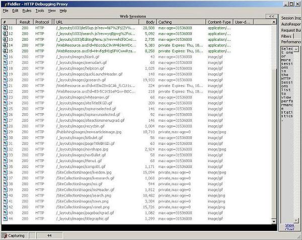 Microsoft Fiddler是一个帮助Debug HTTP连接的免费工具.Fiddler是一个HTTP调试代理,它记录在您的计算机和Internet的所有HTTP流量。Fiddler让你检查所有的HTTP流量,设置断点,以及“fiddle”的传入或传出的数据。Fiddler包含一个强大的基于事件的脚本子系统,可以延长使用任何.NET语言。