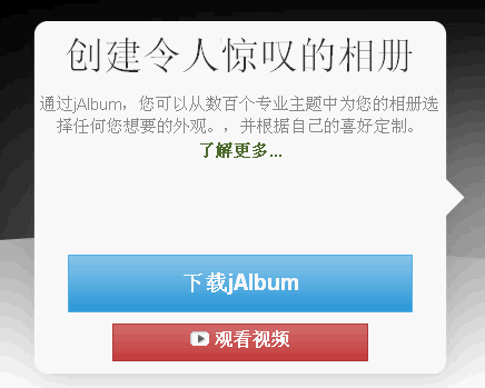 网络相册制作者将文件夹中的图像和电影文件放入JAlbum,然后该软件则会为你的图像创建一个缩略图,并将它们在一个HTML索引页中显示出来。