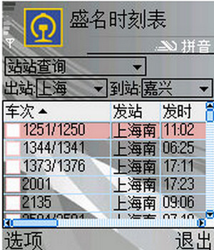 盛名列车时刻表·手机版,是手机上的查询全国列车时刻表的单机版软件,它的运行不需要网络支持。 通过它您可以方便的查询全国铁路时刻表,无论你在身处何处只要您需要掏出手机便可查询全国所有线路上的列车信息。它的方便、快捷是其他同类软件不可替代的。