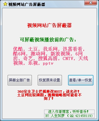 目前视频网站众多,所以广告也变得很多,本工具用来帮您消除广告的烦恼!让你多看视频看广告
