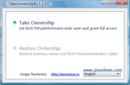 takeownershipex是一个免费的小程序,可以帮你快速获取文件或文件夹的所有权。支持windows vista/7/8操作系统。