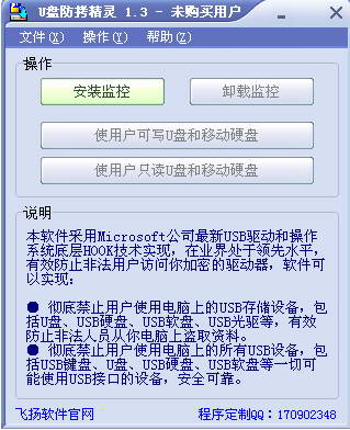 U盘防拷精灵免费版,那个注册.reg其实没啥用,不导入也无所谓……NS3.7的壳,就不要再问我是不是病毒了……上面写的注册费180元一套是扯淡!工作原理是利用usb驱动和操作系统底层hook技术实现,目前算是比较先进的技术,防止别人访问你的加密驱动器,功能很强大。