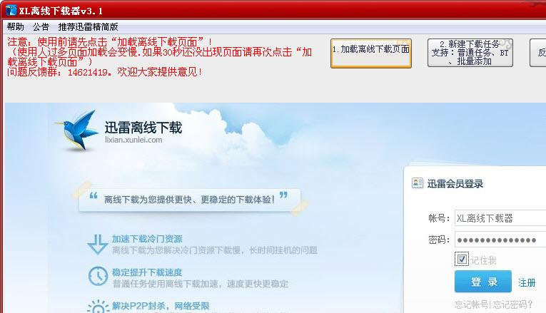 迅雷离线下载器使用易语言制作而成,可能会报毒,担心的话请勿使用。。。