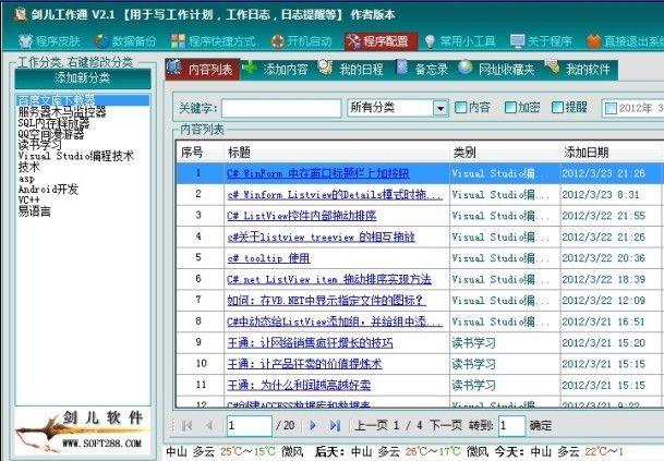 1。程序如新浪博客一样.可以添加分类和博文一样操作.另可以添加提醒功能.