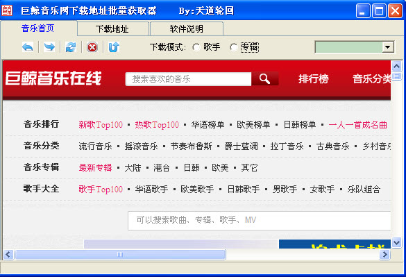 巨鲸音乐网下载地址批量获取器 批量抓取巨鲸音乐网的音频文件下载地址的工具