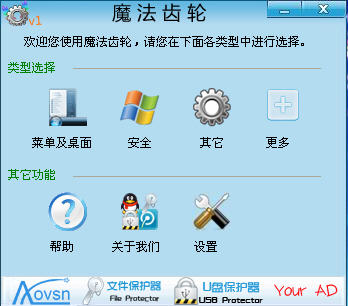 魔法齿轮可以通过这款软件(软件E线下载http://www.edowning.net,转载请保留此标记。)随意修改您的桌面图标,开始菜单,系统安全,浏览器自定义等众多非常实用的设置,轻松打造一个属于自己的Windows!