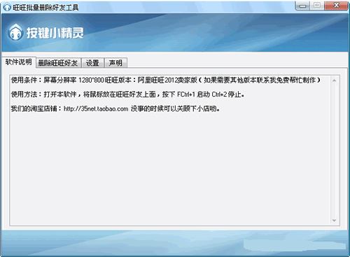 使用方法:打开本软件,将鼠标放在旺旺好友上面,按下 FCtrl+1 启动 Ctrl+2 停止