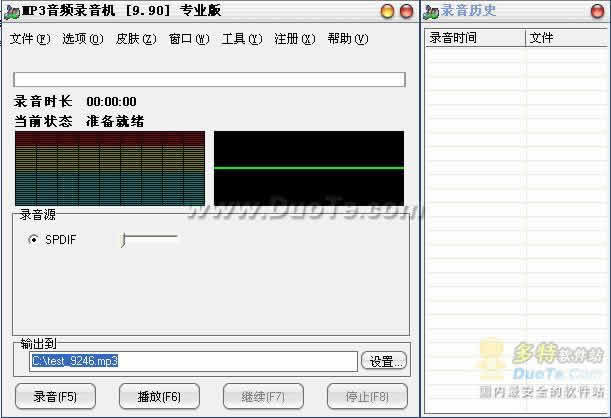 8、热键功能,您可使用热键F5(录音)、F6(播放)、F7(暂停/继续)、F8(停止)来完成录音过程,无需操作鼠标,以避免录音中出现由于鼠标点击而产生的噪音。