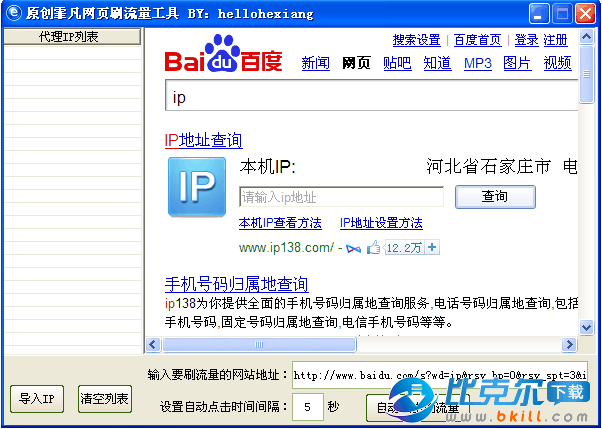3.软件默认的网页地址是提供你直观查看ip变化的网页,可以双击清空网页地址,填上你想刷流量的地址