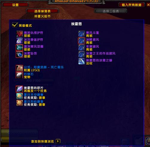 直观方便的在界面上显示外域和原大陆的各个副本BOSS的掉落,PvP荣誉装备,竞技场奖励套装和武器,各阵营声望奖励,可制造物品以及世界事件的奖励物品等,并可以把它链接出来发到聊天窗口。点击小地图上的图标进行查询。已包含所有AtlasLoot模块。