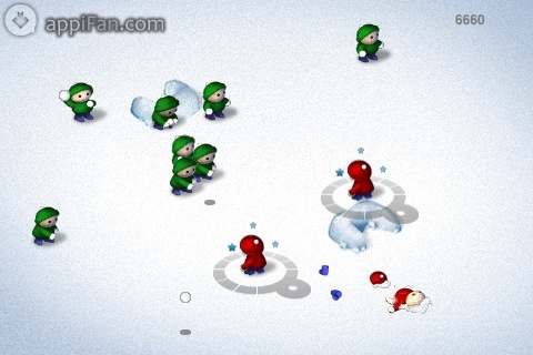 有趣的雪战游戏,分为两队,电脑控制绿队,玩家操作的是红队。