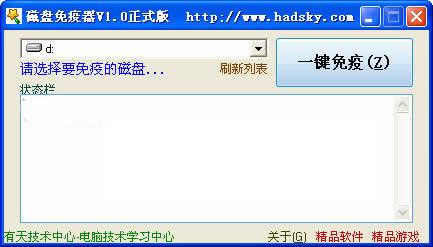 磁盘免疫器是一款可以免疫电脑上的所有磁盘(包括可移动磁盘)的软件,使其免受Autorun病毒的感染。使用方法非常简单,一看就会,如果在免疫时失败,请查看是否已免疫(是否存在Autorun.inf,若存在说明已免疫)。