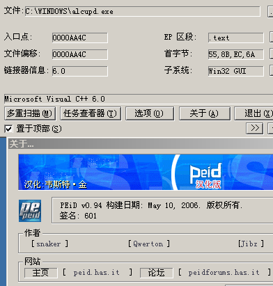 PEiD 可以探测大多数的 PE 文档封包器、加密器和编译器。当前可以探测 600 多个不同签名。PEiD 是最强大的一个查壳工具。