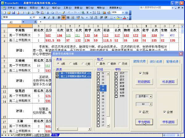 1.跟踪班级成绩。
