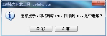 2、 如果卸载ie8.后,浏览器是ie7版,你还想换成ie6版,可以重复1的过程,但要把输入的ie8改成ie7,即可卸载ie7,卸载后即换成了ie6,不需再安装了。
