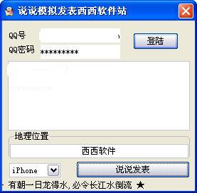 点这里下载-> iPhone说说发表器 v1.2 绿色版 QQ心情说说显示iPhone[腾佑科技提供]