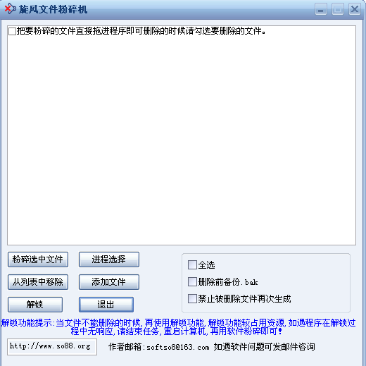 旋风文件粉碎机是一款绿色的文件粉碎工具,可以删除一些手动无法删除的文件,病毒,恶意软件。