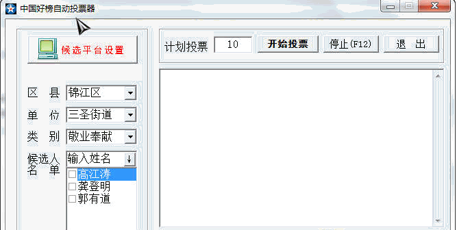 中国好人榜自动投票器无需安装。适用范围:中国好人榜成都候选人平台。
