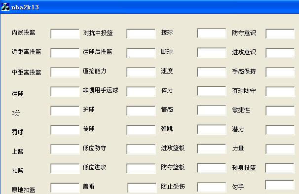 美国职业篮球2K13(NBA 2K13)27项能力值修改器,修改所有能力值。强大功能等你来体验。更难得的他是中文版的哦。使用简单,界面一目了然!