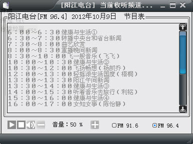 软件比较单调.只有当天节目表和收听电台的基本功能[调节音量大小,设置静音,停止,播放等基本功能]