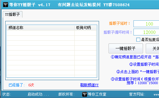 等你YY批量摇骰子器可以批量摇骰子,不管你挂了多少个号,一键搞定!不需要手动,全自动摇骰子,软件可以帮助你抽奖中的几率高很多。