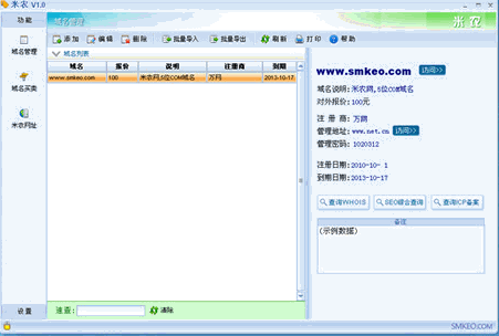 米农是一款简单高效的域名管理软件,轻松方便的批量管理您的多个域名。