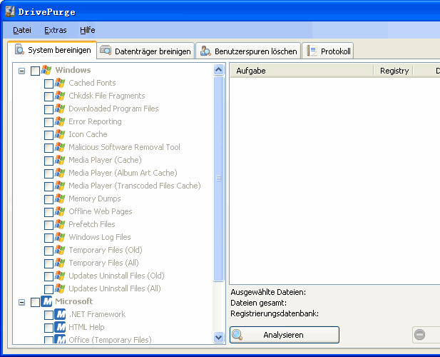 完全免费无需注册支持对应用程序、系统、硬盘分区的清理工具。DrivePurge能够寻找并删除超过750种软件、系统、用户产生的垃圾。