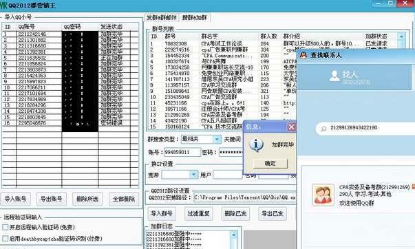易发QQ2012发陌生人软件,是一款不用添加为好友,直接发送临时会话消息的软件。自动登陆,自动搜索,自动发送,发完自动退出并切换下一个QQ发送,自动换ip,远程打码(免费),验证码自动识别(付费),适用于所有用户,新增对企业QQ用户营销以及对拍拍卖家营销功能(路由器及3G无线上网卡用户需要购买91vpn代理)----此软件仅适用于官方QQ2012