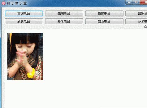 筷子音乐盒集成多个音乐电台方便视听,当你找不到喜欢的歌可以到这里来听歌,使用前请安装net4.0 不然不可以播放 谢谢合作 有什么意见请发邮件到cooy@vip.qq.com