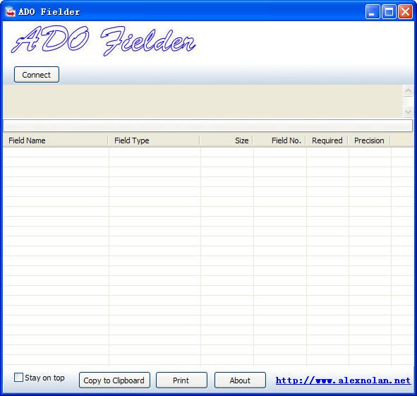 点这里下载-> ADO Fielder(ado操作数据库查询软件) v1.0.3 英文绿色版[迅雷高速下载]