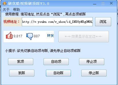 刷优酷视频顶踩V3.0 ,专门优酷刷视频顶踩专门刷优酷视频顶和踩。对你喜爱或者厌恶的视频表达一种情怀。使用简单,方便