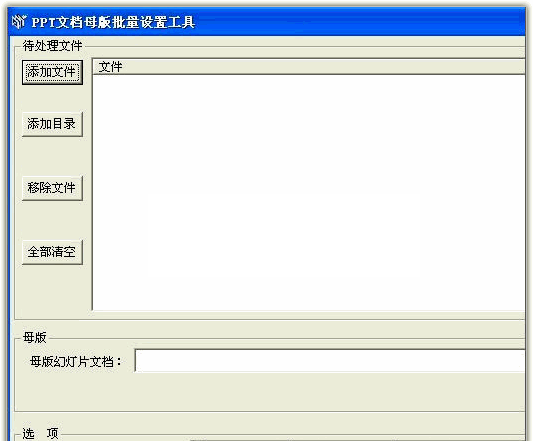 PPT文档母版批量设置工具是一款PPT文档母版批量设置工具,批量为Microsoft PowerPoint幻灯片文档设置母版。