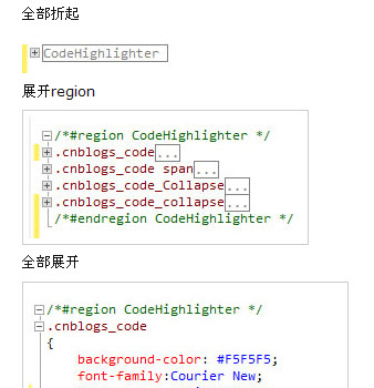 在Visaul Studio 2010中写js或css代码,缺少像写C#代码时的那种折叠功能,当代码比较多时,就很不方便。