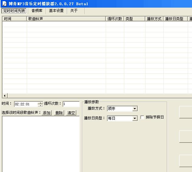 1、根据设定的时间自动播放,可以自由方便的设置多个时间段,每个时间段可设置