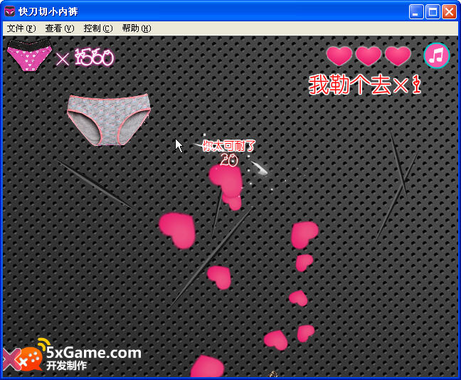 喜欢玩水果忍者吗?喜欢快刀切水果吗?来试试这款猥琐的成人级小游戏吧,它有着比水果忍着更火爆和炫丽的画面。快刀切小裤裤!你懂的。
