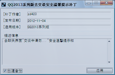 您的位置: 首页-> 下载分类-> 网络工具-> 联络聊天-> 聊天工具-> QQ2013泄露版 去交谈安全温馨提示栏补丁 中文绿色版