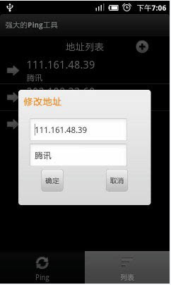 网络维护人员专用,android系统下功能强大的ping工具。可以测试网络连通性。可以储存用户信息。可以储存地址列表。
