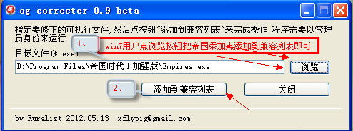 指定要修正的可执行文件,然后点按钮 "添加到兼容列表 "来完成操作.程序需要以管理员身份来运行.