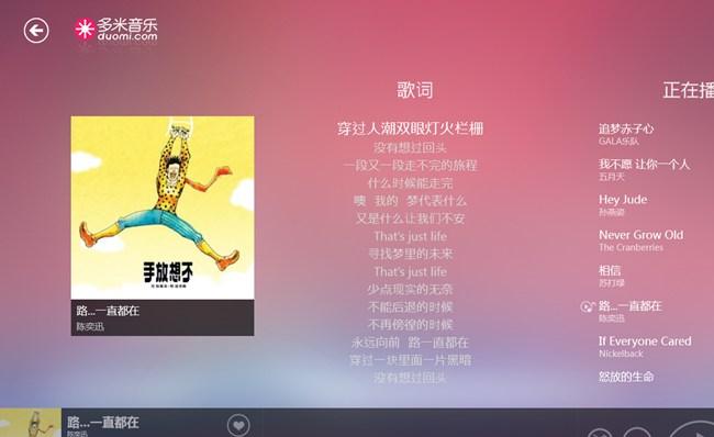 多米音乐播放器for windows 8专为windows 8用户设计,是集本地音乐播放、在线音乐播放和音乐云服务于一身的音乐客户端。