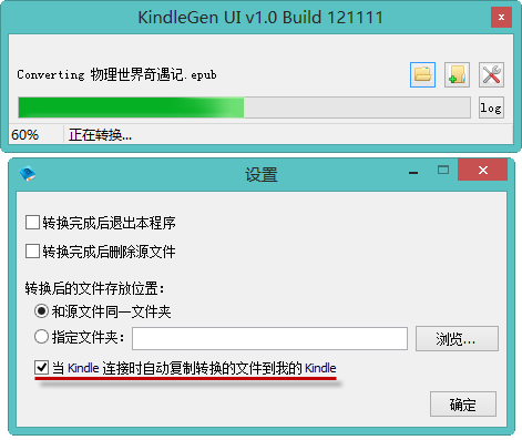 2.如果Kindle已连接到电脑,可以设置将转换完成后的文件直接复制到Kindle中。