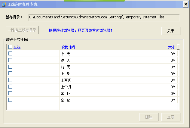 IE缓存清理专家是一款专业的IE缓存清理工具,可以按照时间来排序和清理缓存,并且可以精确查找和删除任何一个缓存文件。特别适用于网页游戏玩家,当游戏缓存加载失败时可选择只清理当天的缓存,从而避免了因为清理掉了所有的缓存而要重新加载游戏。