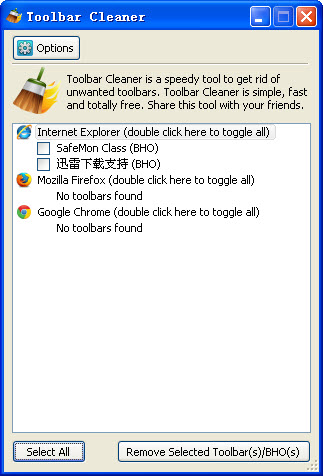 点这里下载-> Toolbar Cleaner(浏览器插件清理工具) v1.1.1.5 绿色版[迅雷高速下载]
