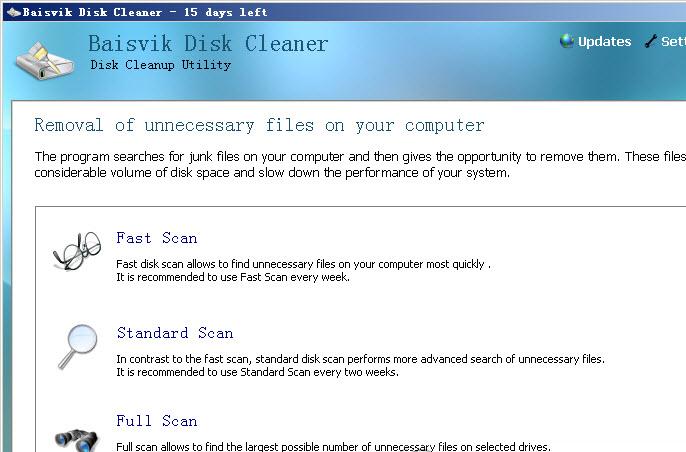 这个软件没有其他功能,专门是用来清理系统垃圾的。不像其他软件,这个在操作的时候还分“fast scan”(快速扫描),“standard scan”(标准扫描)和“full scan”(完整扫描)。快速扫描耗费的时间比较少,而扫描到的垃圾文件则比较少,在较深目录的垃圾文件可能被忽略,而完整扫描会占用你比较多的时间,但是扫描出的垃圾文件是最多最彻底的。所以建议大家一般都是用第三种。