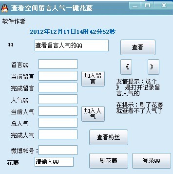 查看空间留言人气一键花藤:可以查看QQ空间 留言 人气 微博粉丝 可以保存你代刷记录 一键花藤浇花.