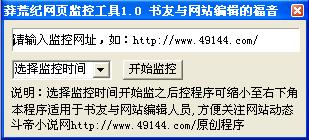 莽荒纪网页监控工具适用于喜欢看小说的书友与从事网站编辑事业的朋友,本工具可以定时监控网页中的内容,若网页发生变化将随时给予提醒。