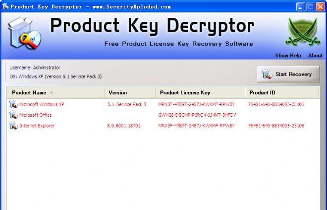 产品密钥解密是一个方便和可靠的应用程序,旨在恢复各种软件产品的许可证密钥。产品密钥解密能够恢复Windows,微软Office,中,VMWare和Internet Explorer的密匙。解密的密钥可以导出为TXT,XML和HTML文件。