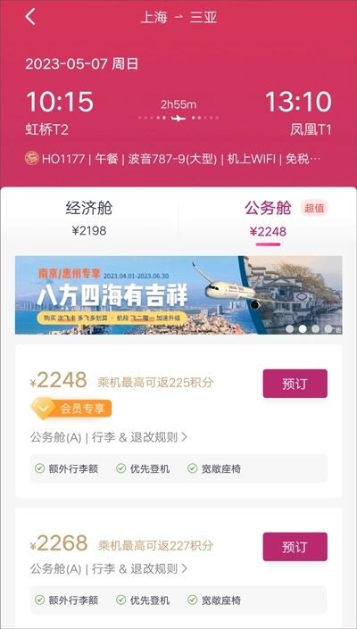 机票升舱:支持线上使用升舱券升舱,并可使用积分抵扣现金。