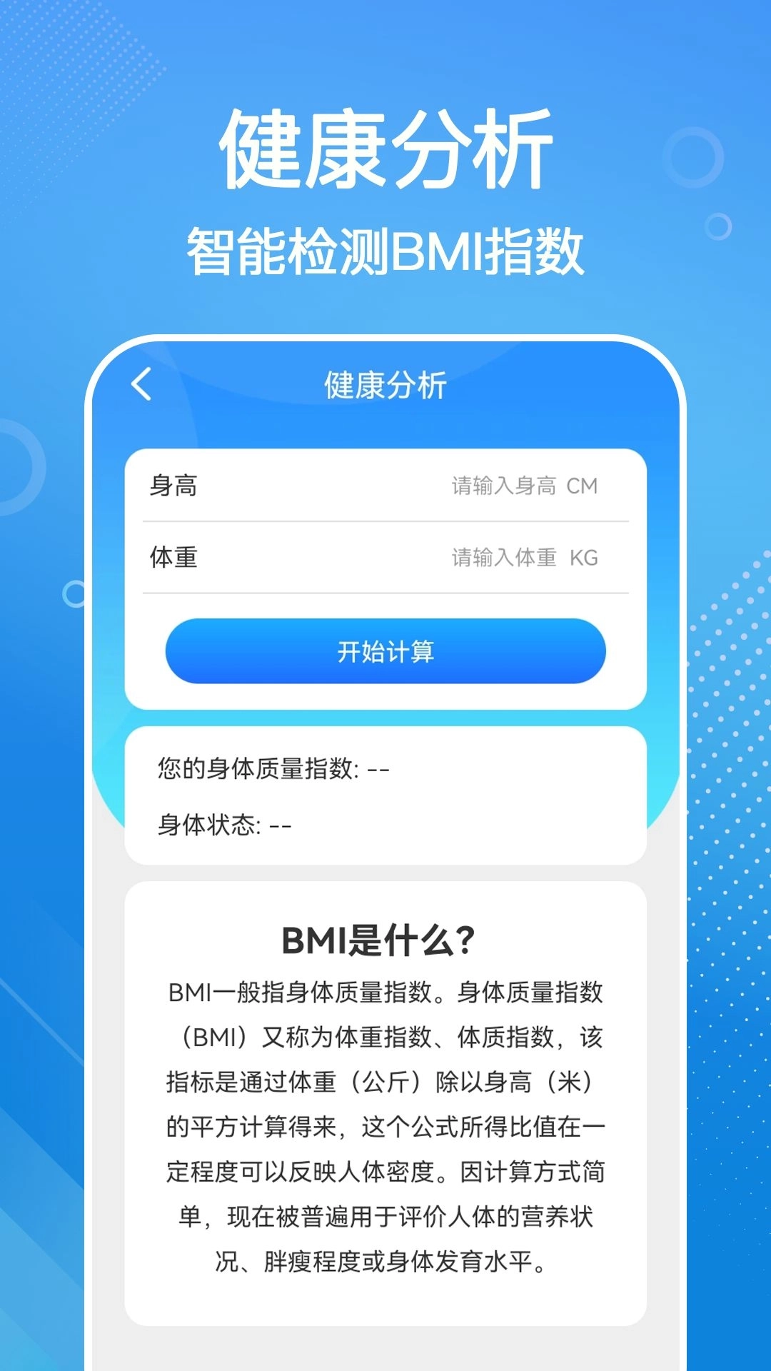 2、只需要输入体重和身高就可以了,避免你去盲目的减肥。