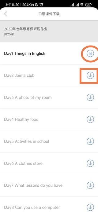 进入到资料库内,我们可以删除我们原本下载好的资源也可以下载新的资料,我们更换也只需要点击我们想看的课件就可以了。