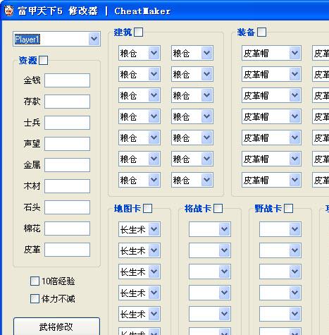 富甲天下5修改器此修改器为最终版本,压缩包括繁体和简体两种修改器),请确定游戏进行,并选择对应的游戏版本,修改资源和宠物需要在菜单栏选中相应主公、武将,宠物,城池,资源名称乱码请在选用菜单预设名称,但开启后将不修改字符串,其他说明详细见修改器中。
